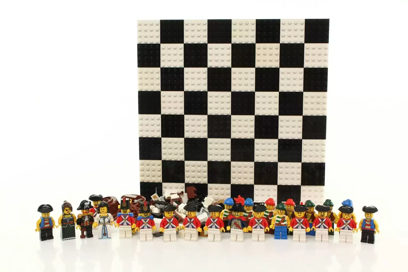해적을 테마로 한 이 세트에는 영국 해군과 허름한 해적 선원들이 등장해요. 각 해적 폰은 독특한 의상과 액세서리를 자랑하며, 칼을 휘두르는 원숭이가 해적 기사로 등장하여 장난스럽고 혼란스러운 매력을 더해요.