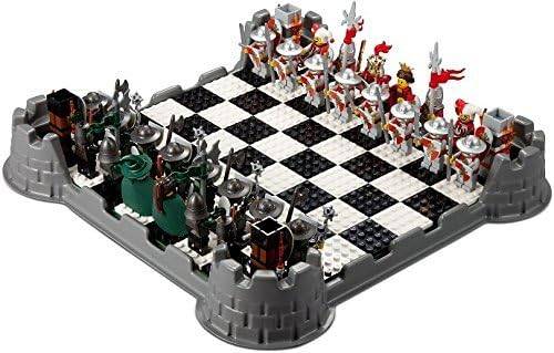 지금까지 출시된 레고 체스 세트 중 가장 크고 정교한 자이언트 체스 세트는 2피트 정사각형의 보드와 스켈레톤, 트롤, 드워프, 성 등 네 가지 미니어처 왕국으로 구성되어 있어요. 매끄럽고 스터드가 없는 보드는 마법사 주교, 기마 기사, 요새화된 공성탑 루크와 함께 우아함을 자아냈어요.